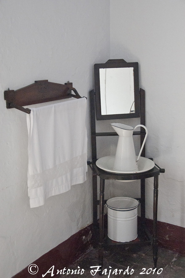 Imaginaos vivir posteriormente de alquiler en una mísera casa de vecinos con una cocina y una habitación en la que duerme toda la familia. Con un baño que no existe. Un agujero en una tabla para toda la corrala de vecinos sobre un basurero (si te pican las gallinas en el culo es cosa tuya). Y una palangana con un jarro con agua, un espejo y una toalla para asearse. El uso de los picos de la toalla para ducharse y quitar los churretes era pura virguería, los de pocas décadas estaréis flipando, pero era lo que había. Y el equivalente al jacuzzi o a la piscina olímpica era un barreño de zinc para los afortunados.