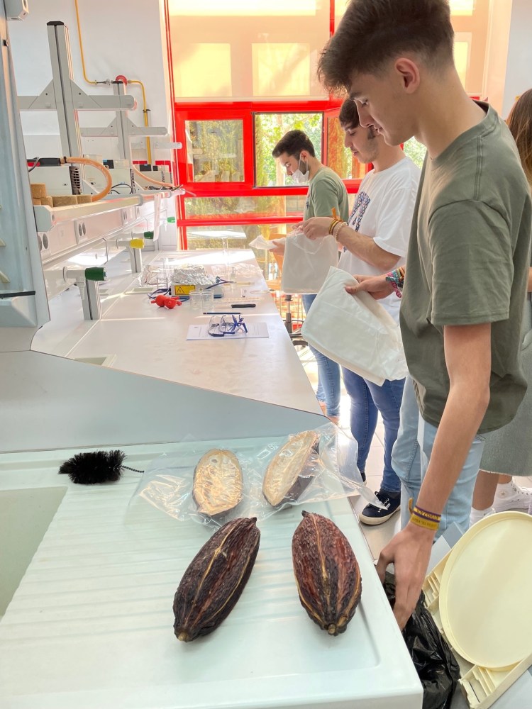 Practicamos su ciencia con ellos. Todo se mide, todo tiene su receta si eres capaz de observar y transmitirlo. Y esa transformación tuvo lugar delante de nuestros propios ojos: la separación de la manteca de cacao, la caramelización o la formación de aromas, como si fuéramos sastres del aire. El contenido de lecitina o el análisis de fenoles, para asegurar que el sabor haría sonreír, -y quizás algo más-, a aquella persona que me gustaba. Tamizado, secado, flow mágico que transforma, que crea el mejor chocolate del mundo.